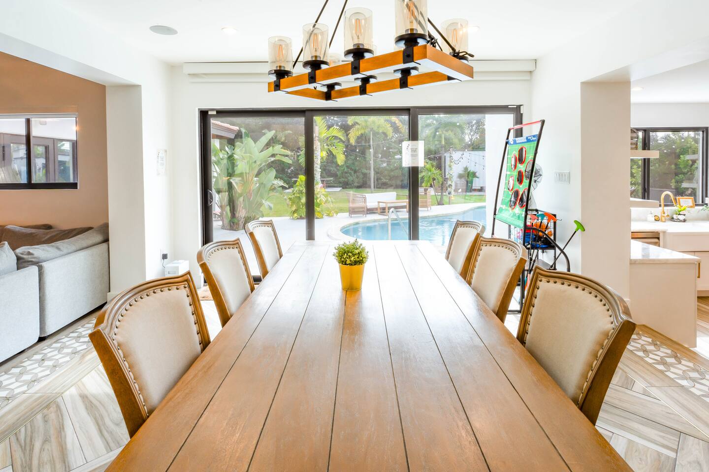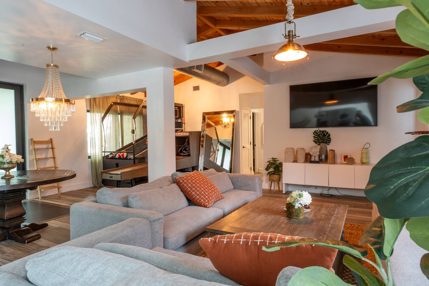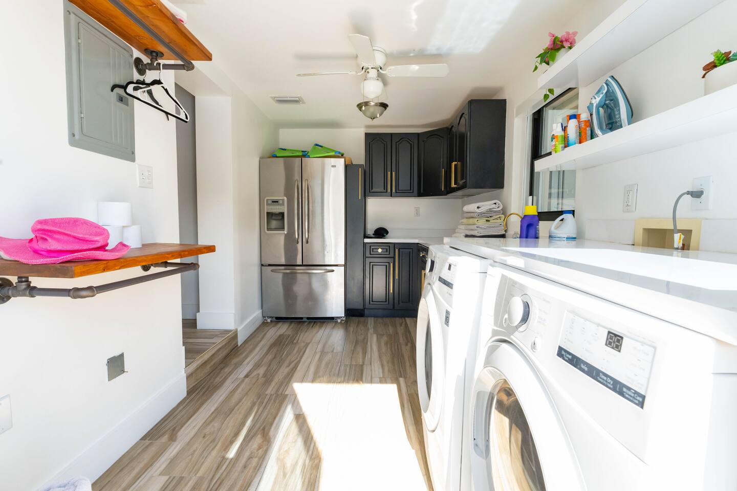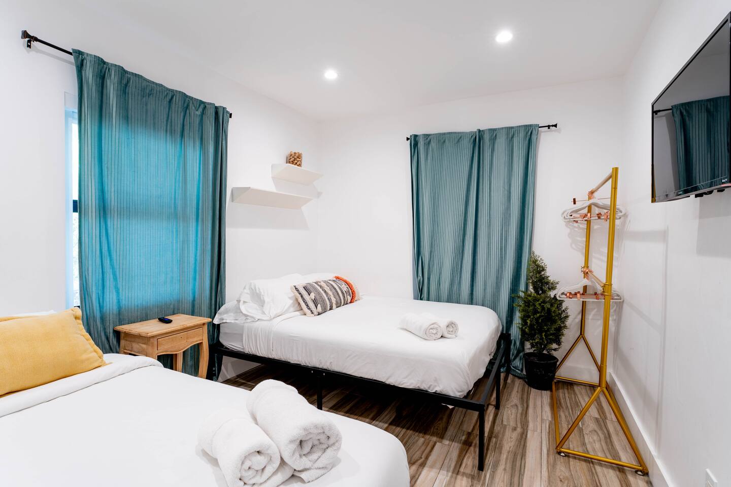 Villa Esperanza is a carefully curated Mediterranean Villa, centrally located and a short distance to all areas of interest. Miami International Airport - 5 miles, less than 15 minutes Coral Gables - 2 miles, 10 minutes Coconut Grove - 1.4 miles, 5 minutes Brickell - 3.7 miles, 12 minutes Downtown - 5 miles, 13 minutes Midtown - 7 miles, 15 minutes Miami Beach - 11 miles, 18 minutes South Beach - 9.5 miles, 20 minutes -The home features a large deep pool, large gazebo with outdoor kitchen, massive backyard with multiple games(putt putt, corn hole, soccer, pool basketball, ring toss, connect 4 and beautiful landscaping. -Laundry room the size of a small kitchen. -Five bedrooms, 3 on the first floor, one on the second floor which has its own private rooftop terrace and doubles as an office and the fifth is a converted shipping container with a full bathroom and AC. -Spacious living room and a chef's dream kitchen with 10 foot island and wrap around counter-tops. -Primary bedroom with pool & backyard views, primary bath with soaking tub and double shower head. -Bedrooms 2 & 3 each with queen beds. -Bedroom 4 & 5 with twin daybeds and trundles.