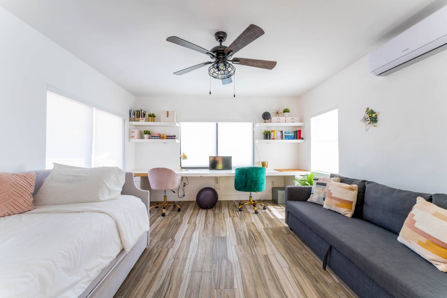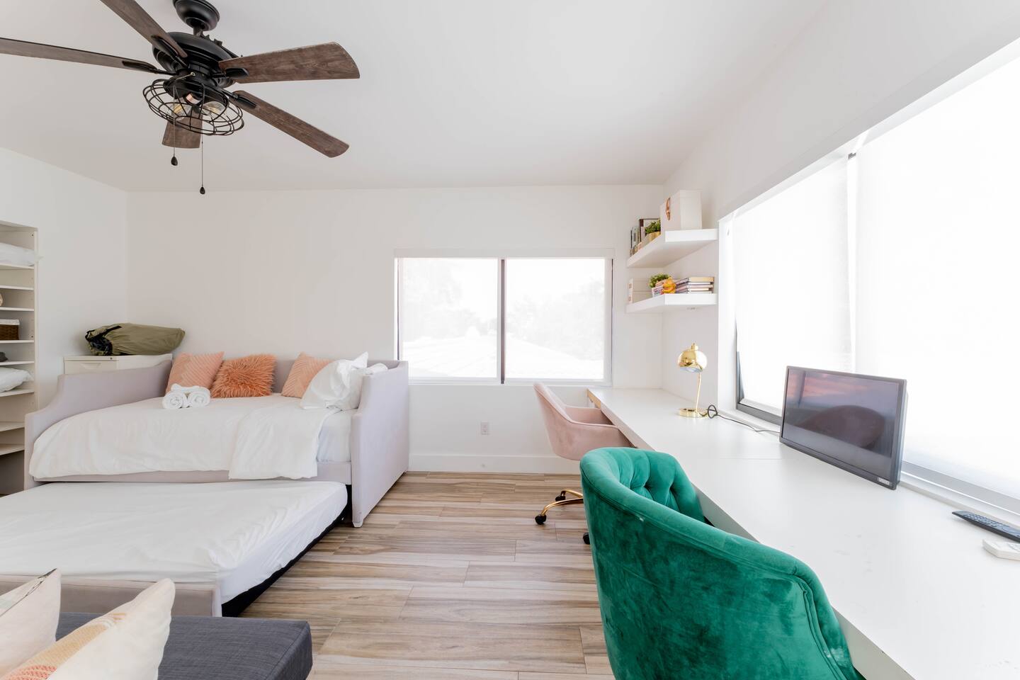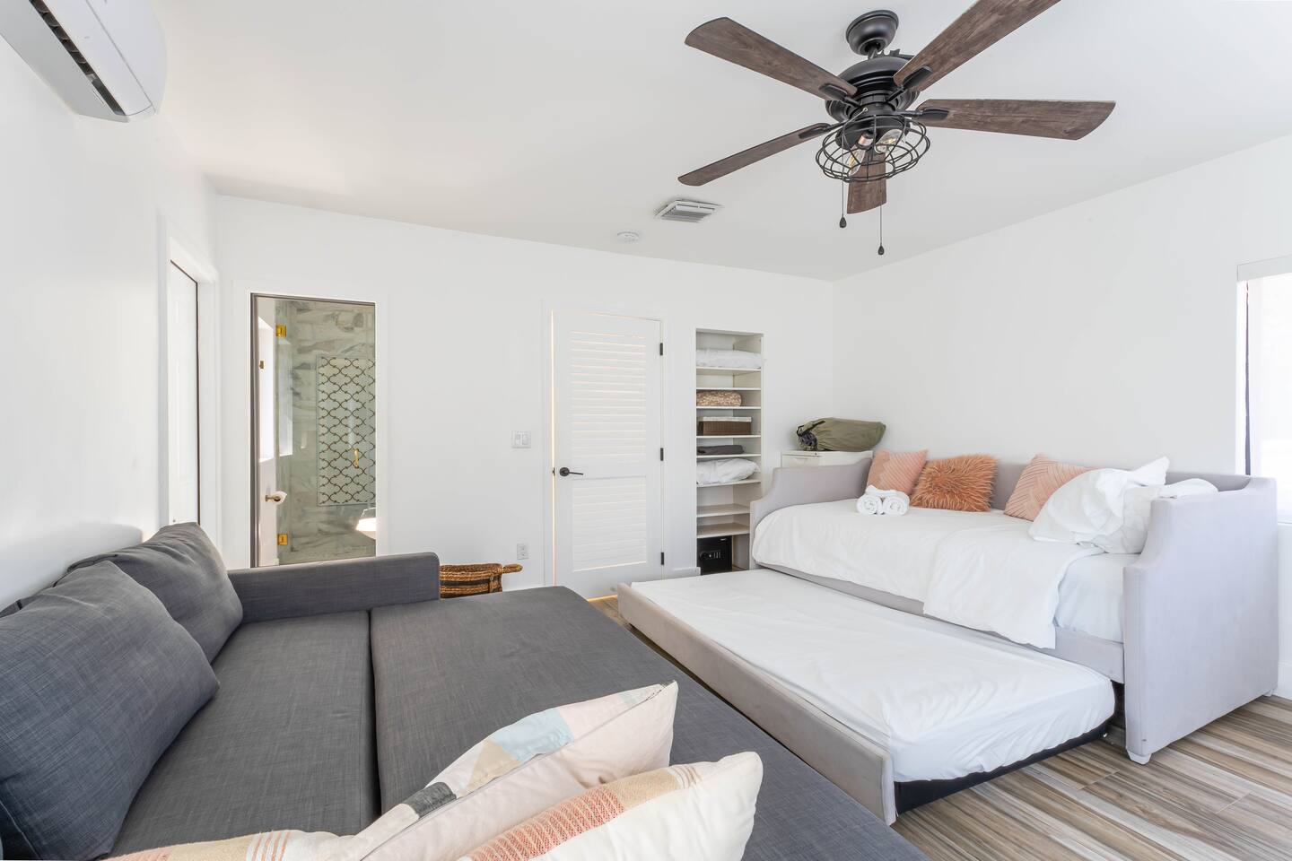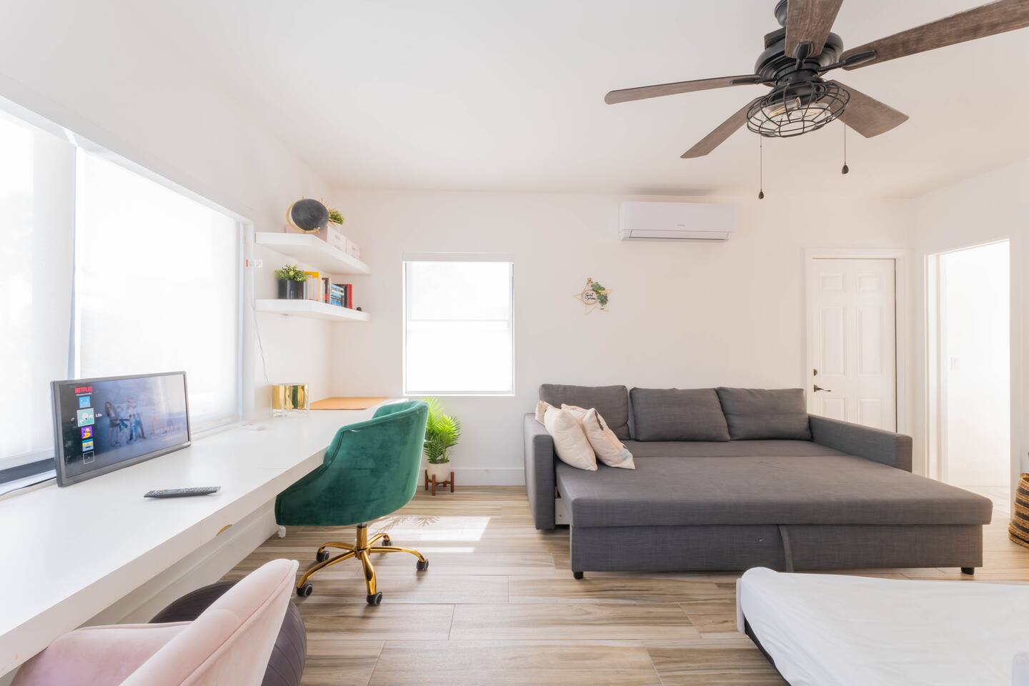 Villa Esperanza is a carefully curated Mediterranean Villa, centrally located and a short distance to all areas of interest. Miami International Airport - 5 miles, less than 15 minutes Coral Gables - 2 miles, 10 minutes Coconut Grove - 1.4 miles, 5 minutes Brickell - 3.7 miles, 12 minutes Downtown - 5 miles, 13 minutes Midtown - 7 miles, 15 minutes Miami Beach - 11 miles, 18 minutes South Beach - 9.5 miles, 20 minutes -The home features a large deep pool, large gazebo with outdoor kitchen, massive backyard with multiple games(putt putt, corn hole, soccer, pool basketball, ring toss, connect 4 and beautiful landscaping. -Laundry room the size of a small kitchen. -Five bedrooms, 3 on the first floor, one on the second floor which has its own private rooftop terrace and doubles as an office and the fifth is a converted shipping container with a full bathroom and AC. -Spacious living room and a chef's dream kitchen with 10 foot island and wrap around counter-tops. -Primary bedroom with pool & backyard views, primary bath with soaking tub and double shower head. -Bedrooms 2 & 3 each with queen beds. -Bedroom 4 & 5 with twin daybeds and trundles.