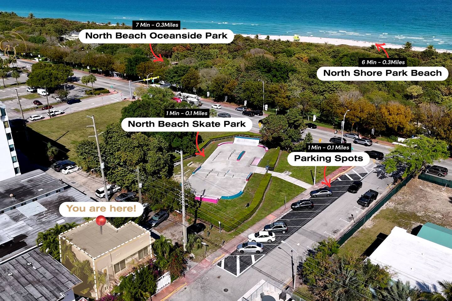 The Soflo Beach Villa is conveniently across the street from the beach, and steps away restaurants and shops.