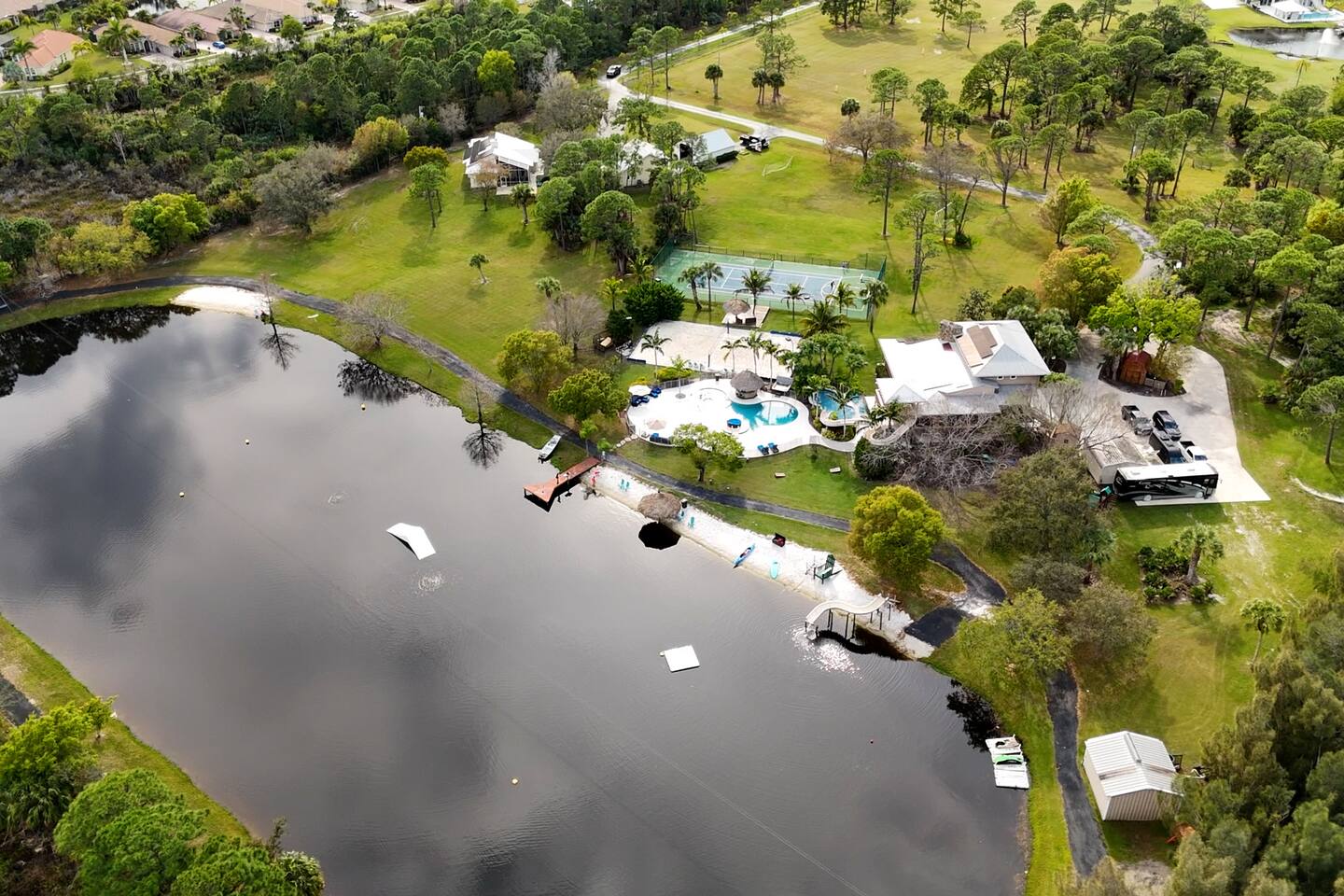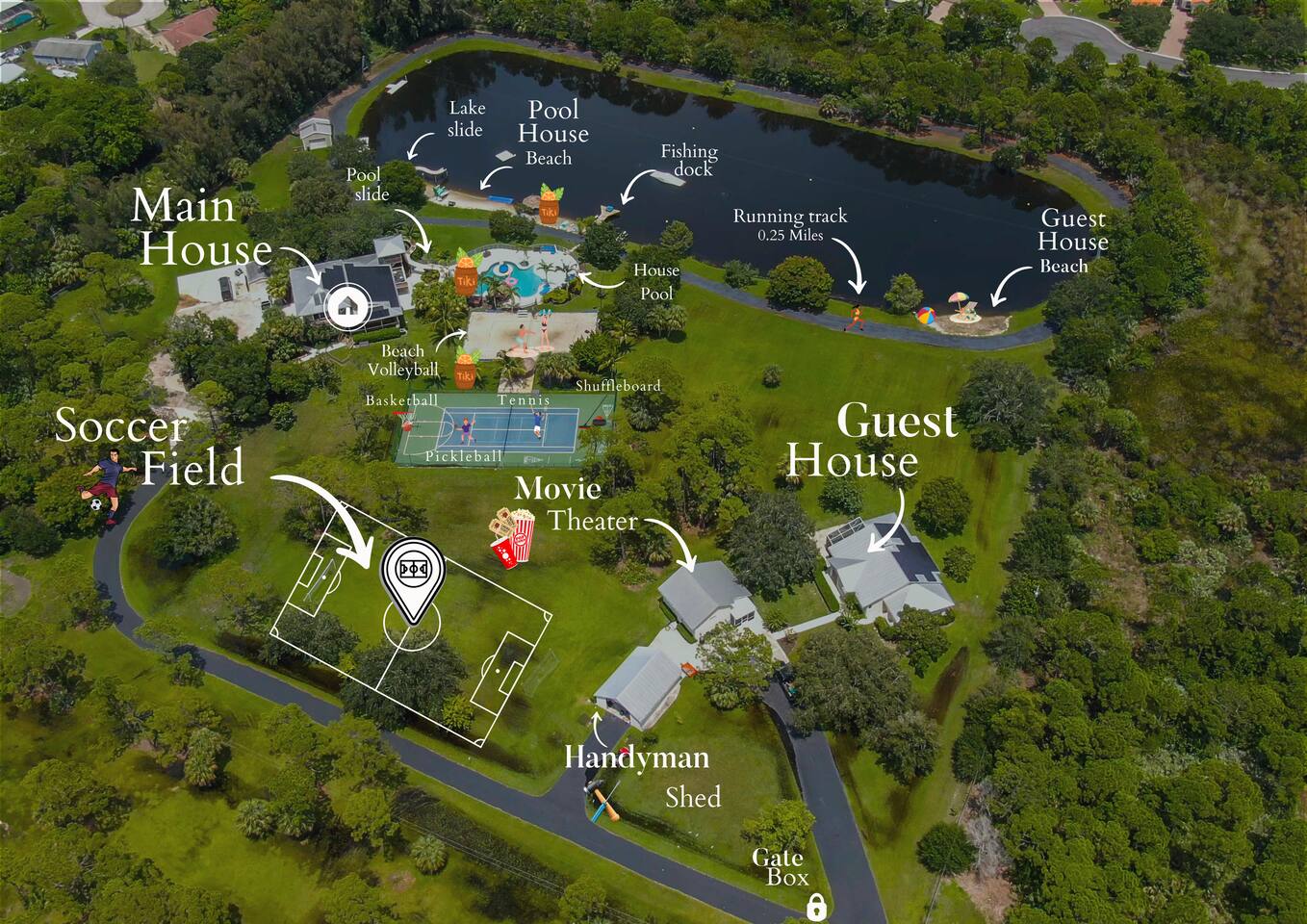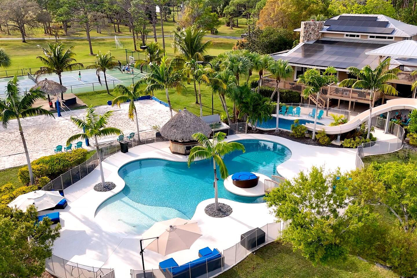 Welcome to GQ Vacations — your ticket to the coolest vacation spot in Jensen Beach! Your gateway to endless fun and relaxation. Your own private resort includes: - 2 Houses - Movie theater - Fishing lake - Tennis courts - Basketball courts - Soccer field - Fully equipped kitchen - Pool - Grill Ask about having your wedding here or events! Book 3 months in advance for an extra 5% discount!