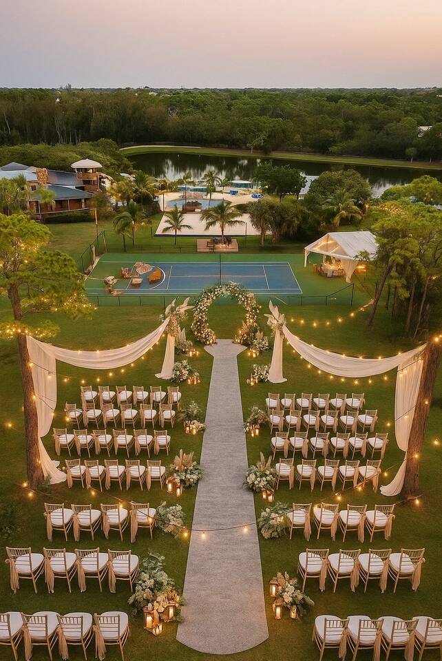 -Sleeps 26 -Pickle Ball -3 acres -2 Houses -2 pools -2 slides -Tennis court -Half basketball court -Beach Volleyball -Private lake -Children's playground -Soccer field -Movie theater -Paddleboards -Kayaks -Golf range -Fire Place -Fishing rods If you’d like to host your wedding at our property, the venue fee is $15,000 for the weekend. This fee includes venue access only (no additional services or items included) and covers exclusive use of the entire property from Friday at 3:00 PM through Monday at 10:00 AM. If you’d like to extend your stay beyond those dates/times, additional nights are available at $1,000 per night. We also work with a trusted wedding planner we’ve partnered with who will coordinate everything with you. She’s familiar with our house rules and property logistics, can help source and coordinate vendors, and will ensure the weekend runs smoothly from start to finish. She has 35 years of experience, knows the best vendors in the city, and is known for getting excellent pricing.